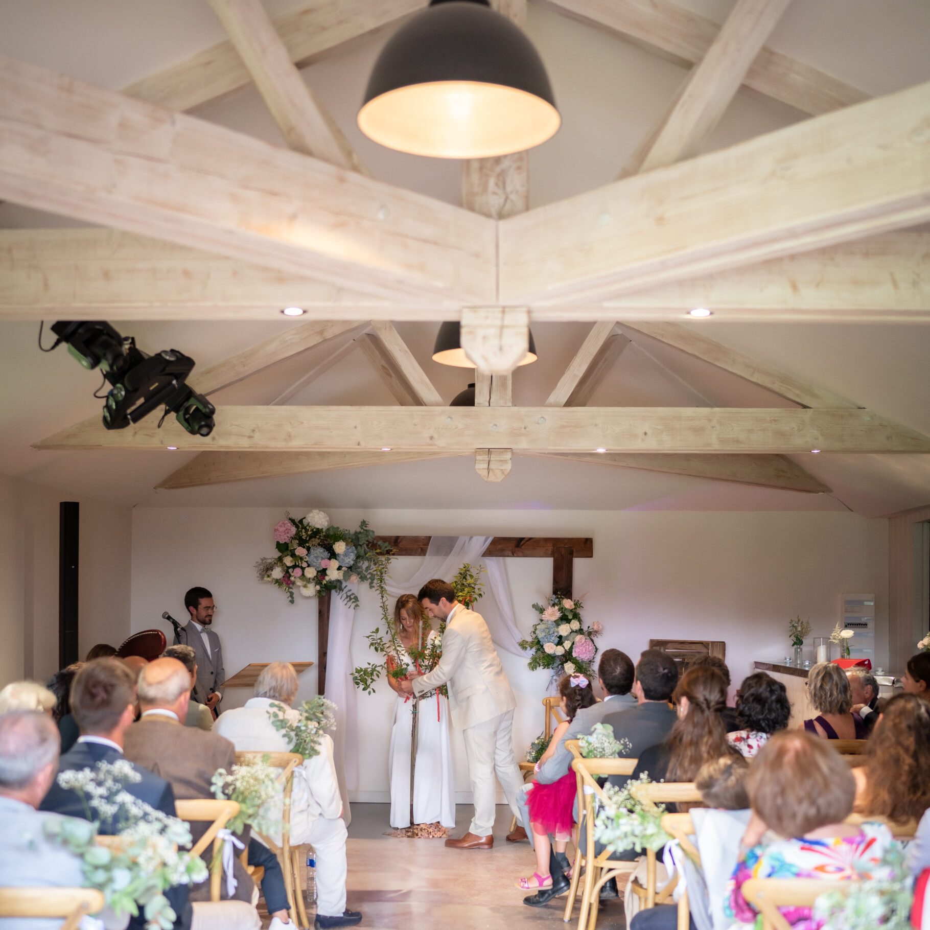 Lorsque le temps n’est pas au rendez-vous, notre salle de danse vous permet d’organiser votre cérémonie laïque et votre vin d’honneur en intérieur.